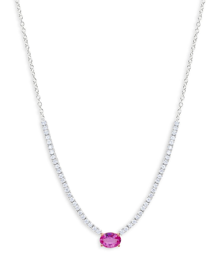 14K White Gold Pink Sapphire & Diamond Cocktail Necklace, 18'