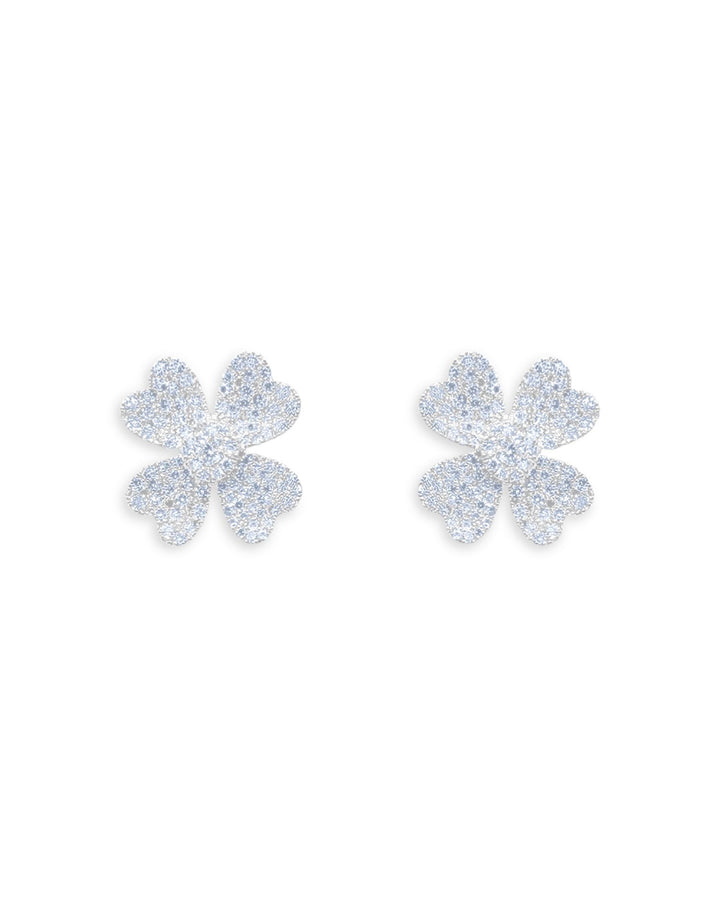 14K White Gold Diamond Pavé Flower Stud Earrings