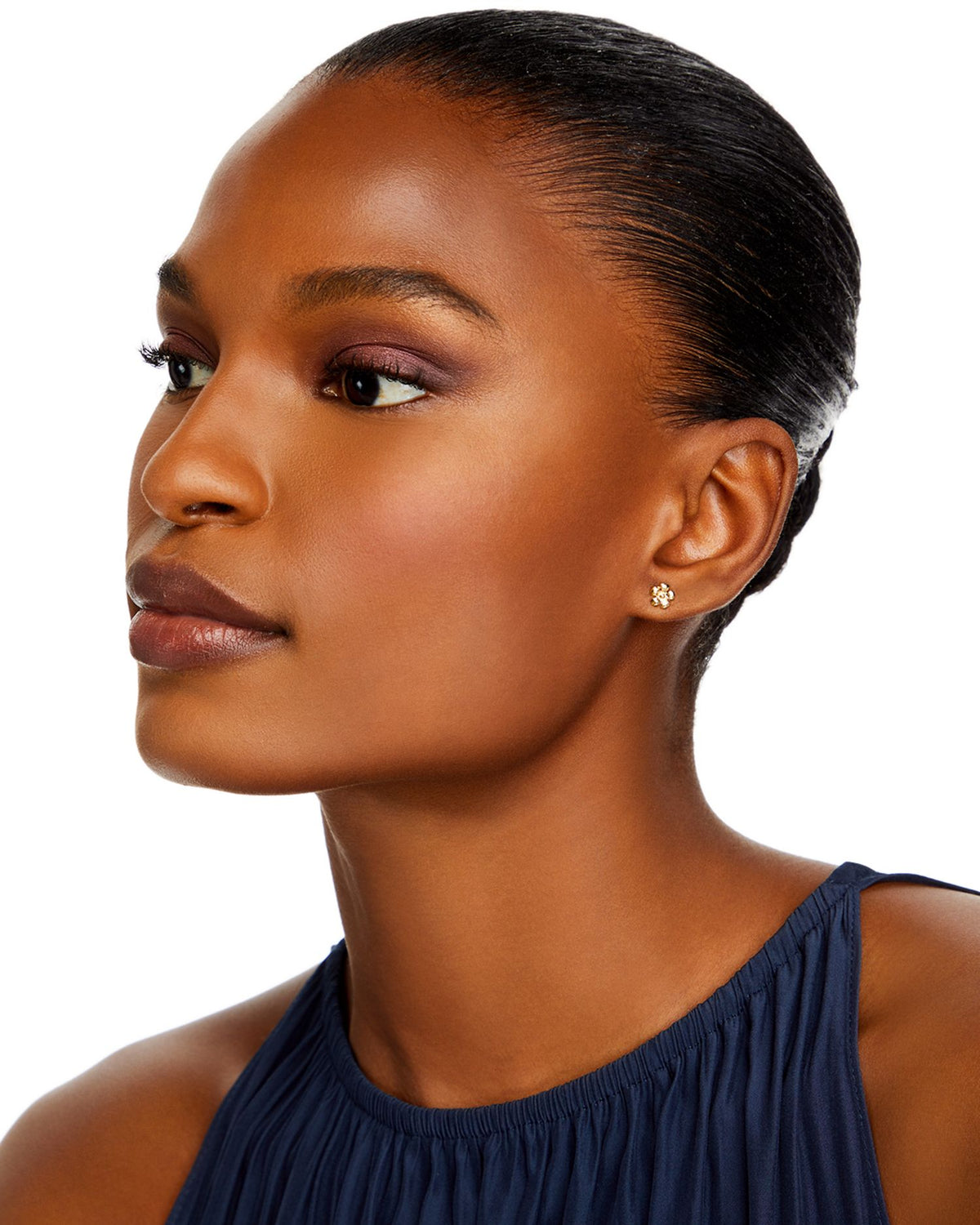 These Daisy Stud Earrings in 14K Yellow Gold by Moon & Meadow feature small polished gold studs shaped like a daisy. The charming and simple design makes these earrings a perfect choice for adding a playful yet elegant touch to your everyday style.