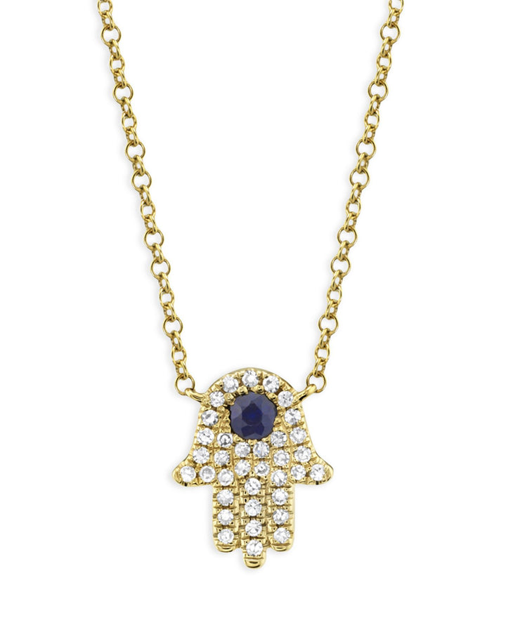 14K Yellow Gold Hamsa Pendant Necklace with Diamonds & Blue Sapphire, 18' - Exclusive