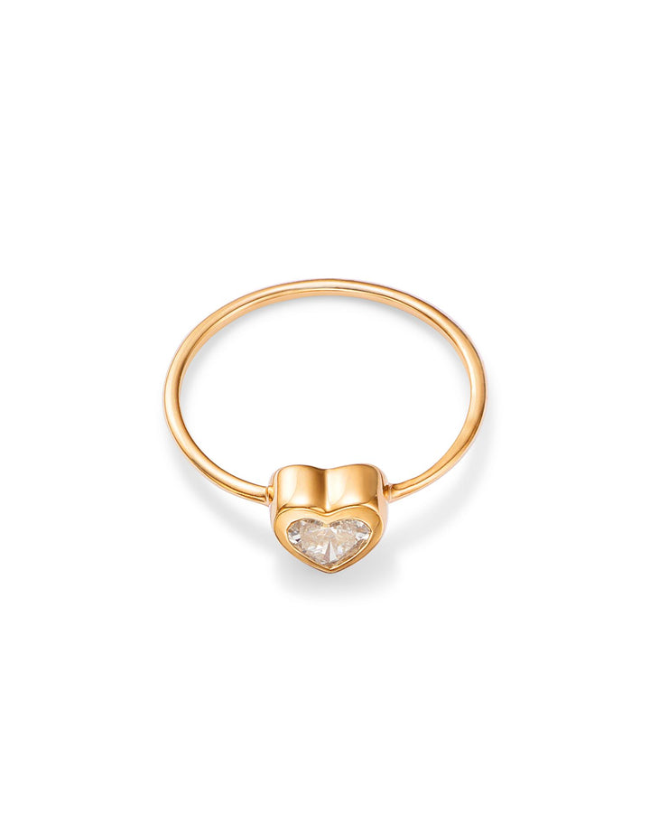 14K Yellow Gold Lab Grown Diamond Heart Bezel Solitaire Ring