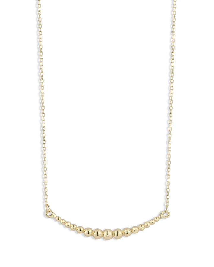 14K Yellow Gold Graduated Bead Curved Bar Necklace, 17-18"