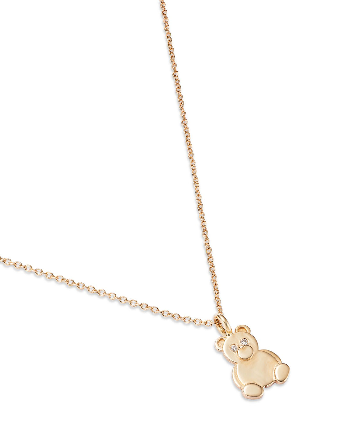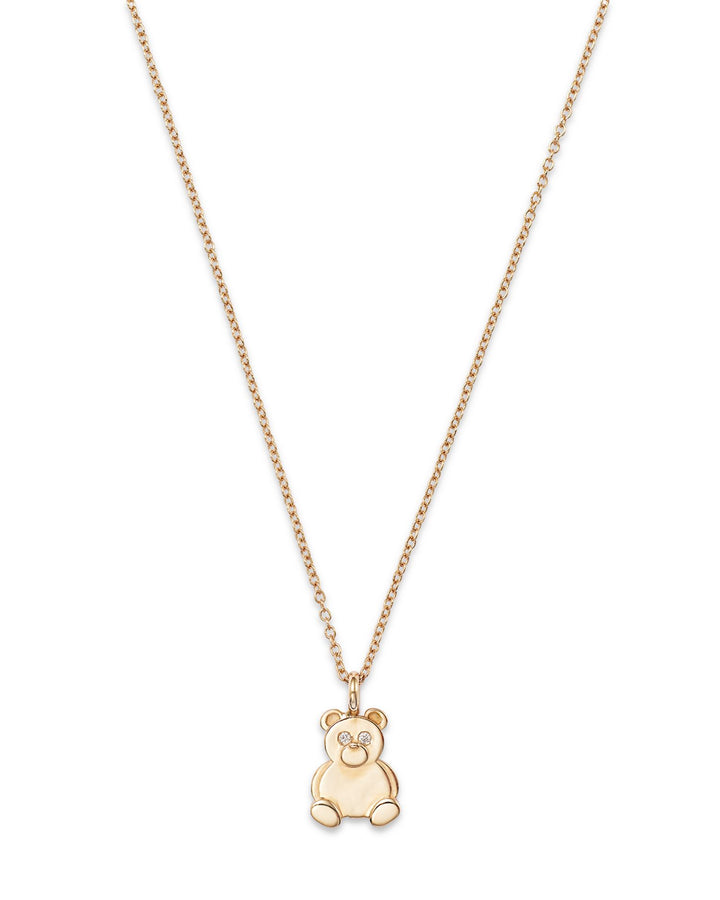 14K Yellow Gold Diamond Teddy Bear Pendant Necklace, 16-18'