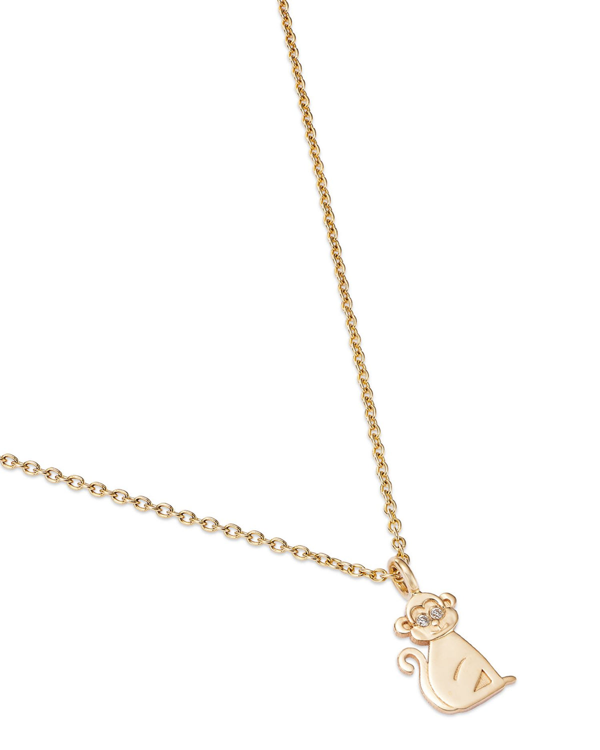 14K Yellow Gold Diamond Monkey Pendant Necklace, 16-18'