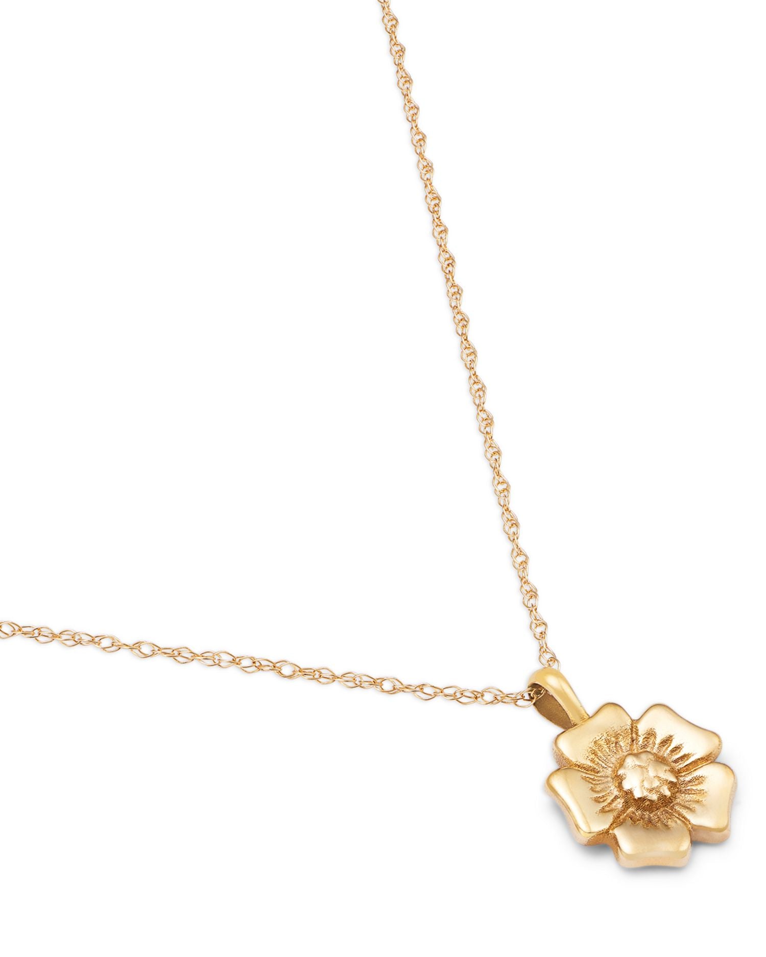 14K Yellow Gold Flower Pendant Necklace, 18'
