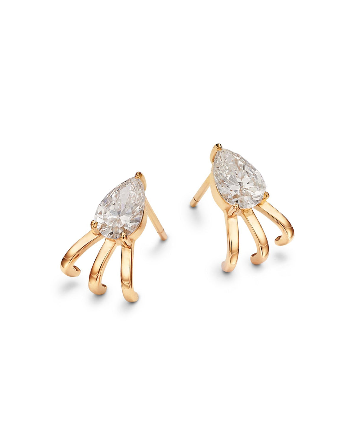 These 14K Yellow Gold Lab Grown Diamond Pear Triple Huggie Hoop Earrings by Moon & Meadow from the Lab Grown collection feature exquisite triple huggie hoops, each set with pear-cut lab-grown diamonds. These earrings offer a stunning combination of modern design and brilliance.