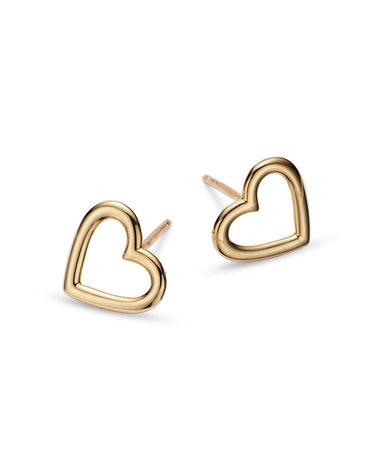 These 14K Yellow Gold Open Heart Stud Earrings by Moon & Meadow feature polished openwork hearts, capturing a youthful and charming aesthetic. Perfect for everyday wear or a meaningful gift, these studs bring a touch of elegance to any look.