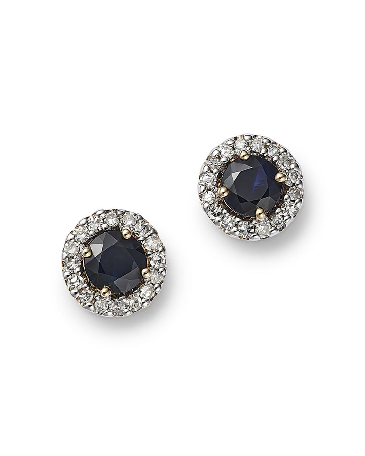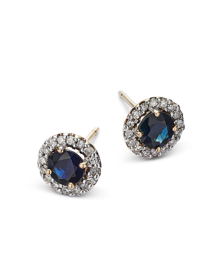 These 14K Yellow Gold Sapphire & Diamond Stud Earrings by Moon & Meadow combine classic elegance with modern flair. The deep blue sapphires are surrounded by a halo of sparkling diamonds, creating a timeless yet luxurious design. Perfect for adding a refined touch to any outfit, these earrings are ideal for both daily wear and special occasions.