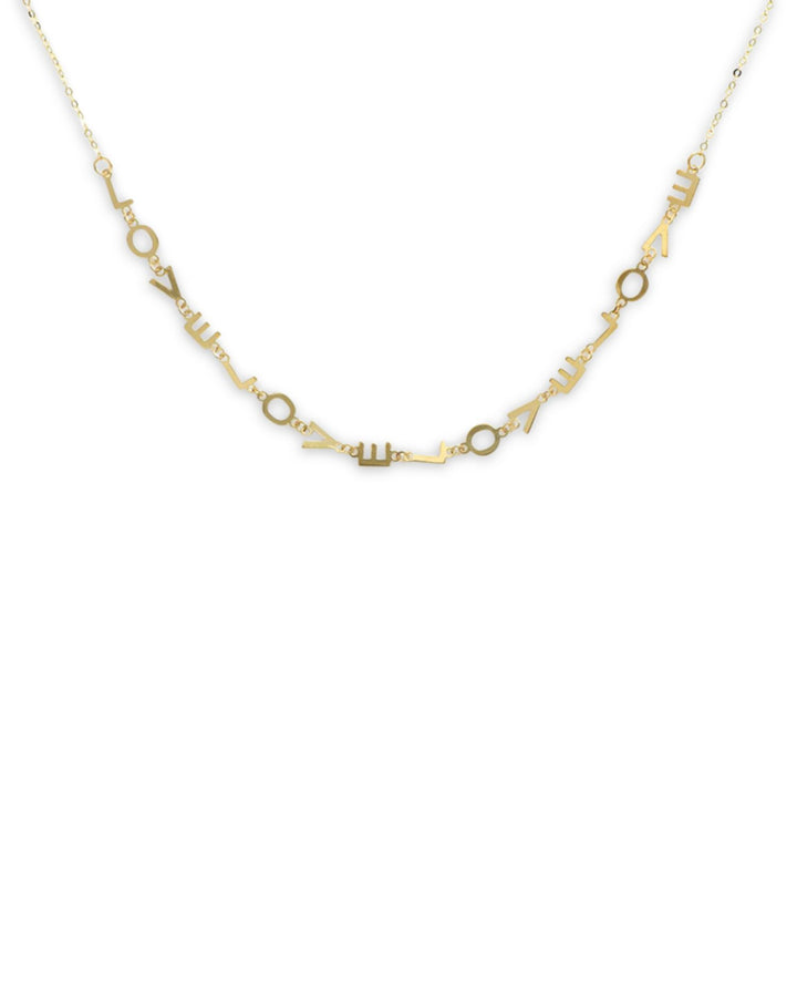 14K Yellow Gold LOVE Curved Bar Necklace, 18'
