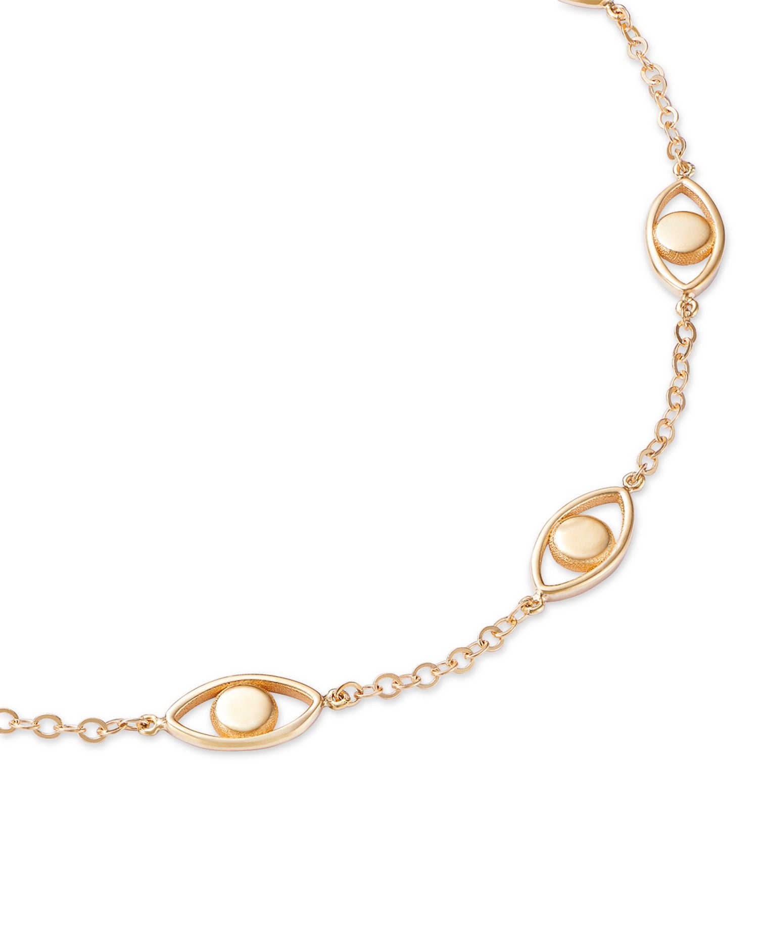 This 14K Yellow Gold Evil Eye Link Bracelet by Moon & Meadow features a mystical evil eye motif on a yellow gold link chain. A symbolic and sophisticated design, perfect for adding a touch of protection and elegance to your style.