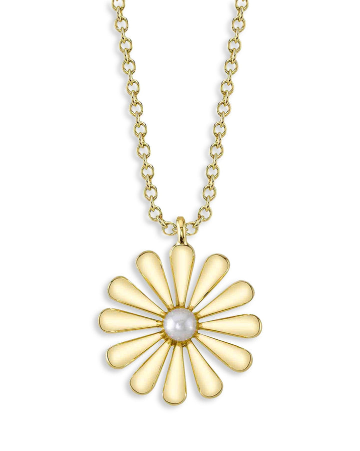This 14K Yellow Gold Jackie Cultured Freshwater Pearl Flower Pendant Necklace by Moon & Meadow is a beautifully retro design, featuring a glistening cultured freshwater pearl at the center of a flower pendant. The 14K yellow gold accents enhance the pendant’s vintage-inspired charm, making it a perfect piece for those who appreciate classic elegance with a modern twist. This necklace adds a feminine touch to any outfit and is ideal for day-to-night wear.