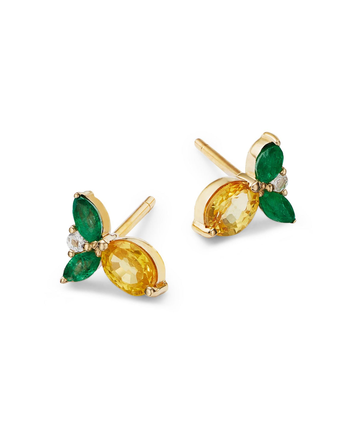These 14K Yellow Gold Multi Gemstone Lemon Stud Earrings by Moon & Meadow feature a playful yet refined design with yellow sapphire, emerald, and white topaz set in 14K yellow gold. The charming lemon-inspired design is a symbol of positivity and vitality, making these earrings perfect for adding a touch of color and joy to any look.