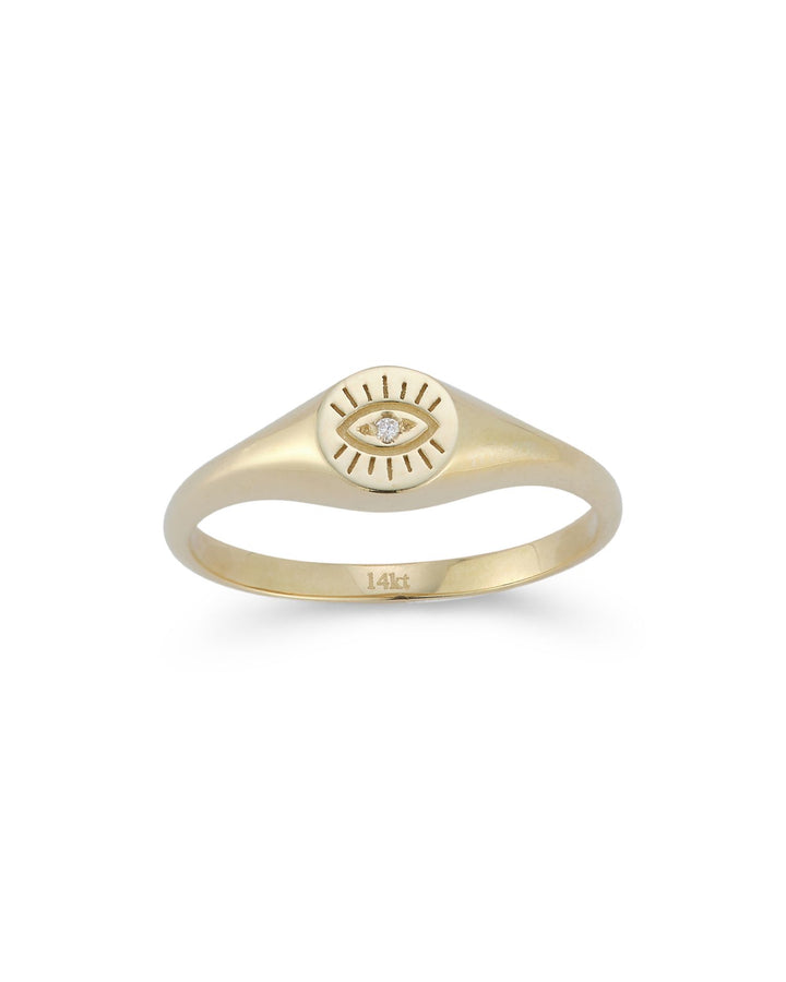14K Yellow Gold Diamond Evil Eye Signet Ring