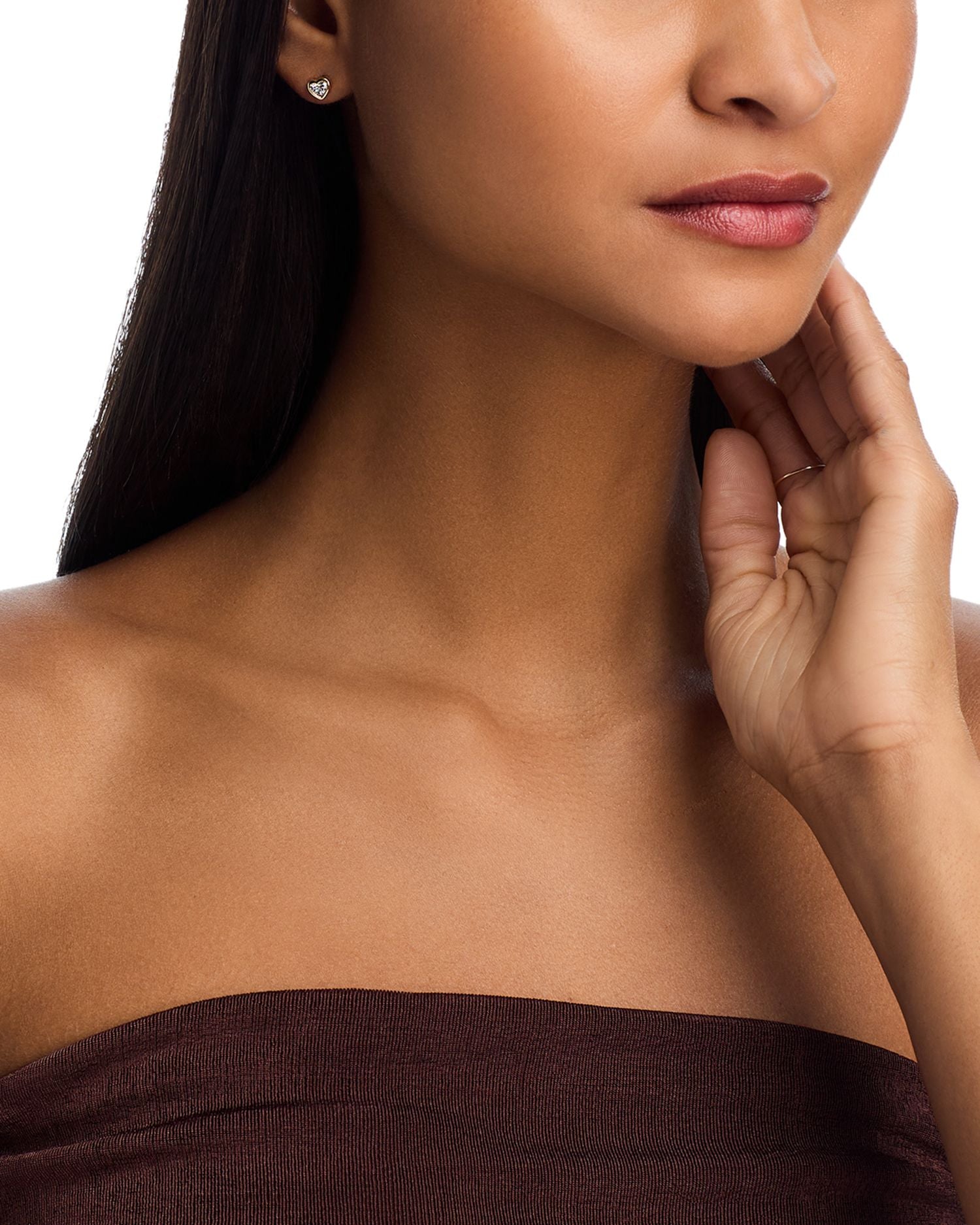 These 14K Yellow Gold Lab Grown Diamond Heart Bezel Stud Earrings by Moon & Meadow feature sweet heart-shaped lab-grown diamonds that are bezel set to sparkle with every movement. These earrings offer a classic and romantic design, perfect for adding a touch of elegance to any look. With a refined yet playful style, these diamond studs are perfect for everyday wear or special occasions.