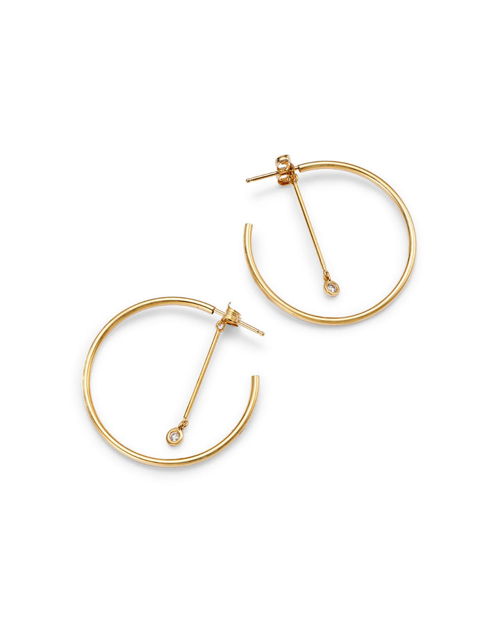 14K Yellow Gold Diamond Dangle Post Front to Back Hoop Earrings