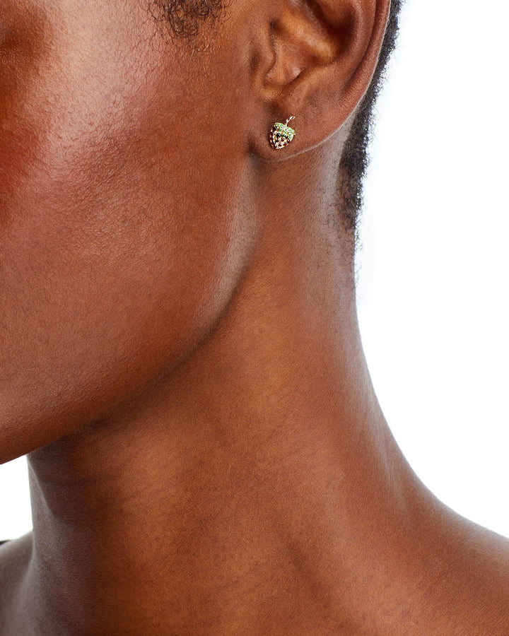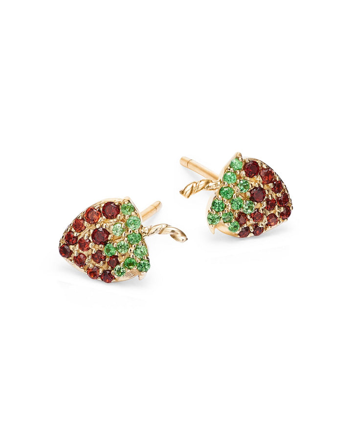 14K Yellow Gold Garnet & Tsavorite Strawberry Stud Earrings