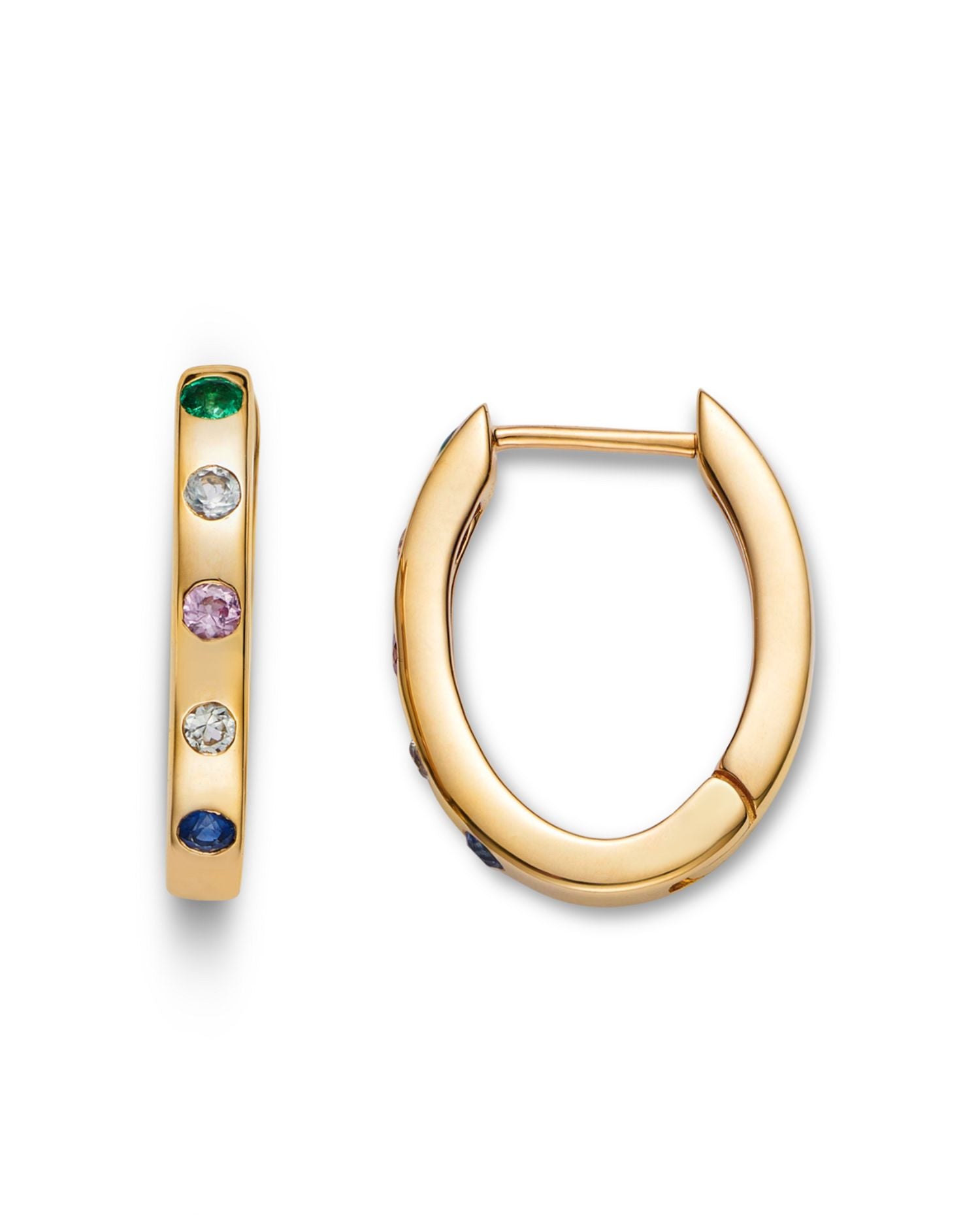 14K Yellow Gold Multi Gemstone Huggie Hoop Earrings - Exclusive