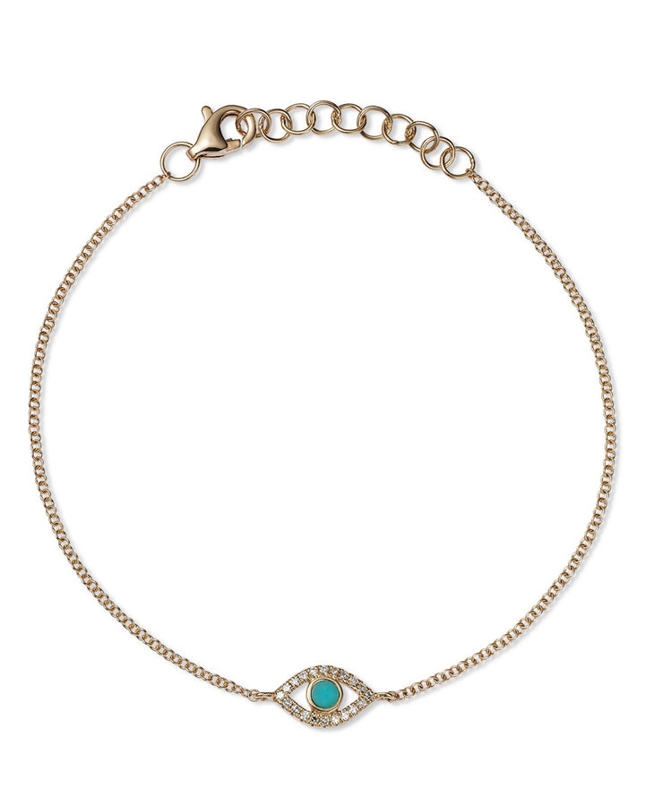 14K Yellow Gold Kate Turquoise & Diamond Evil Eye Chain Bracelet