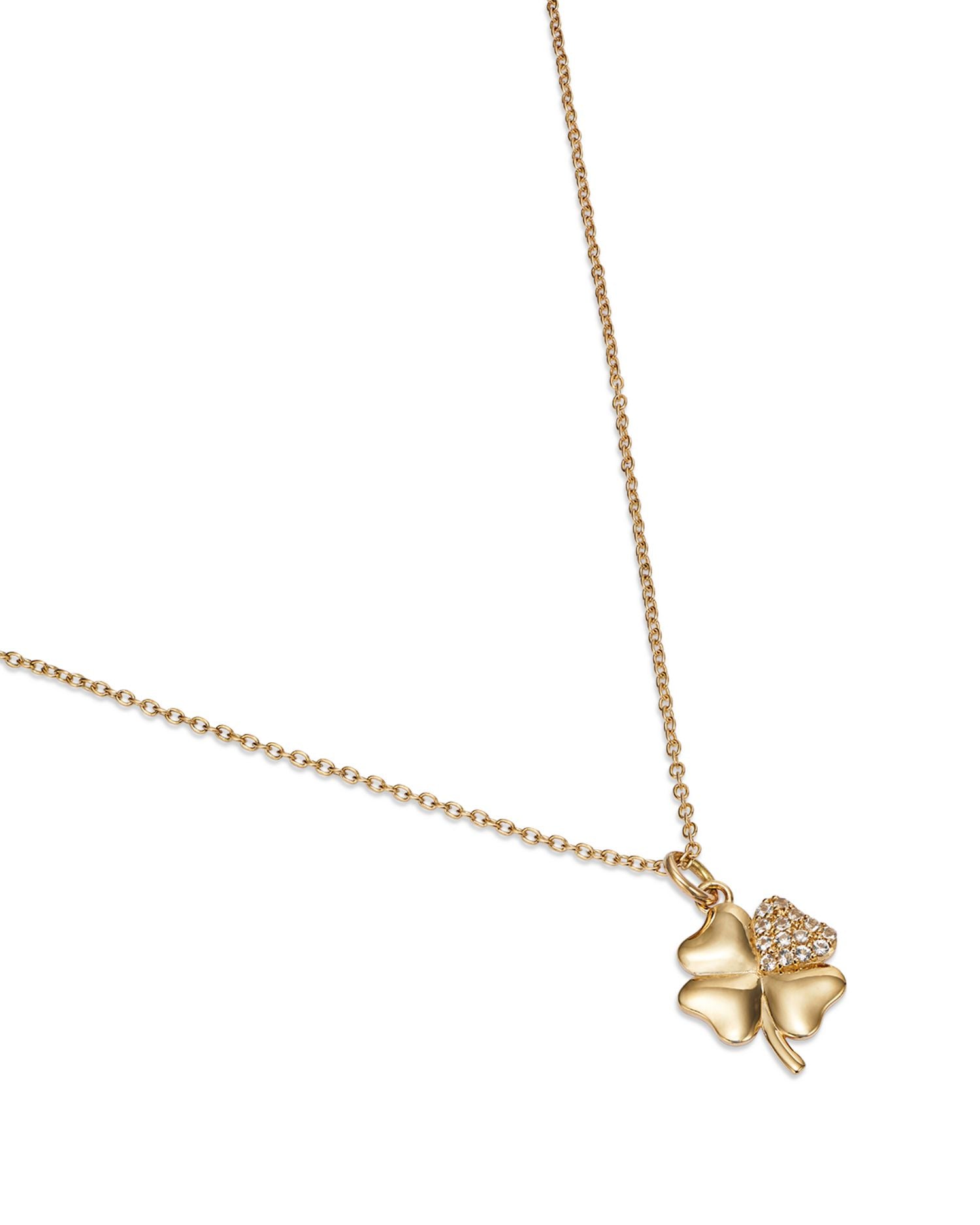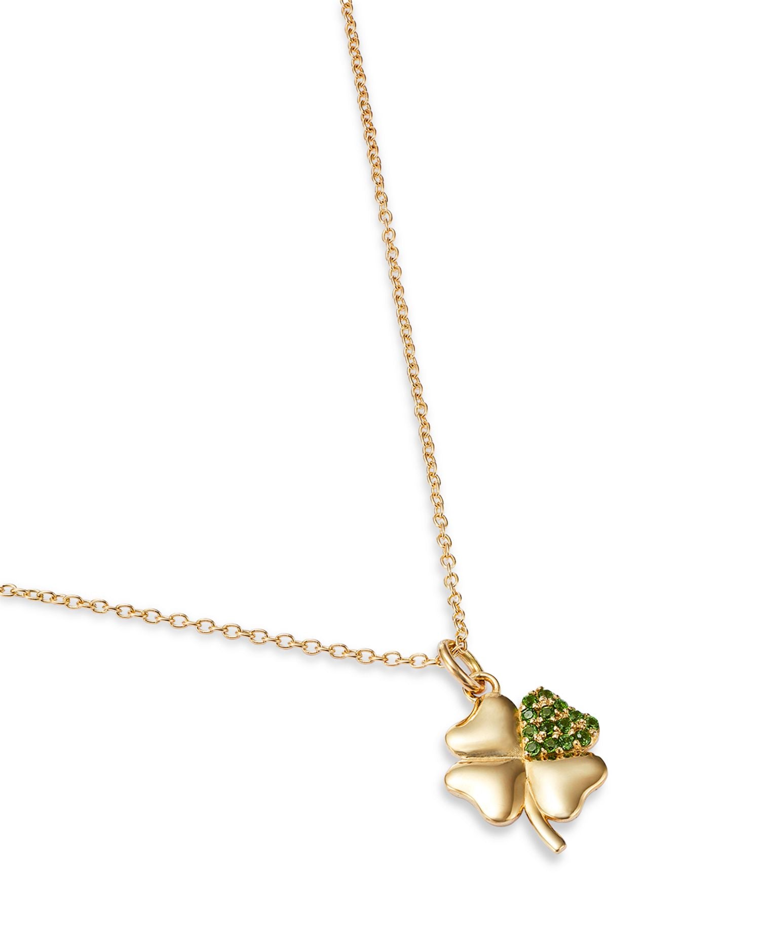 14K Yellow Gold Green Diopside Clover Pendant Necklace, 16'-18'