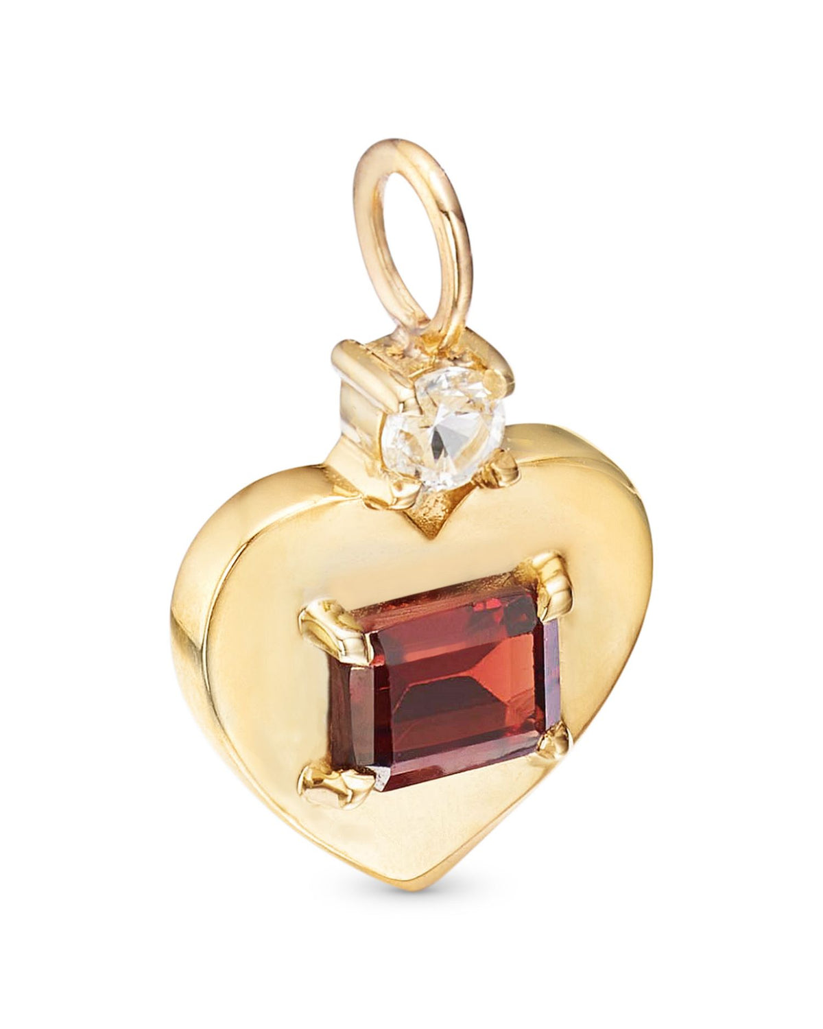 14K Yellow Gold Garnet & White Topaz Heart Charm Pendant