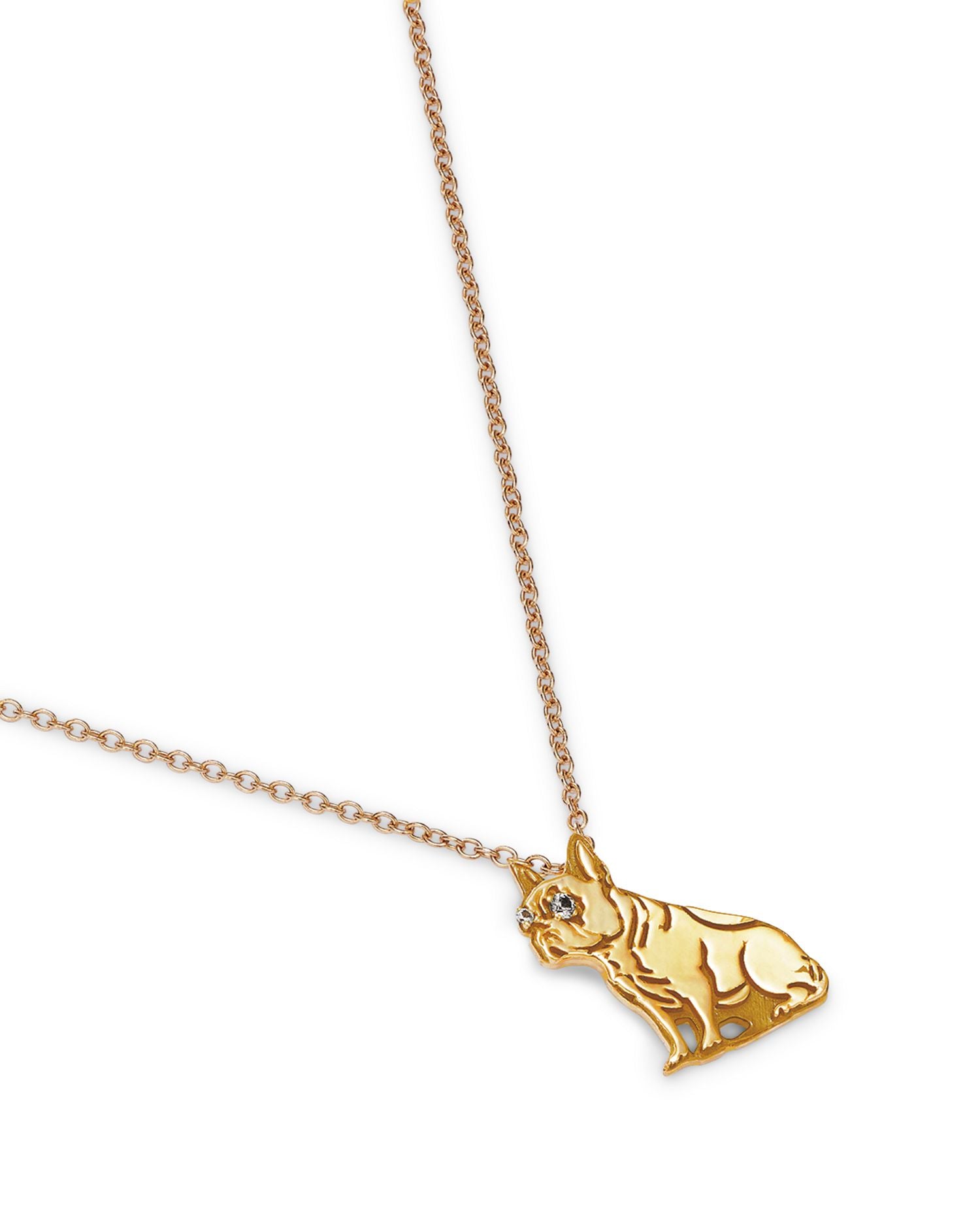14K Yellow Gold French Bulldog Pendant Necklace, 16-18'