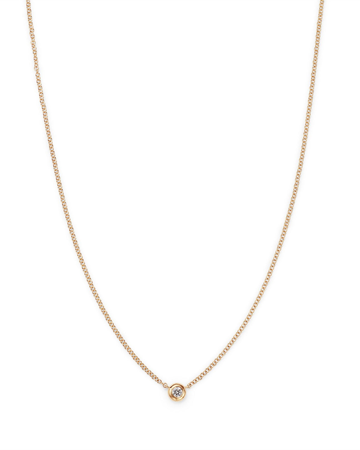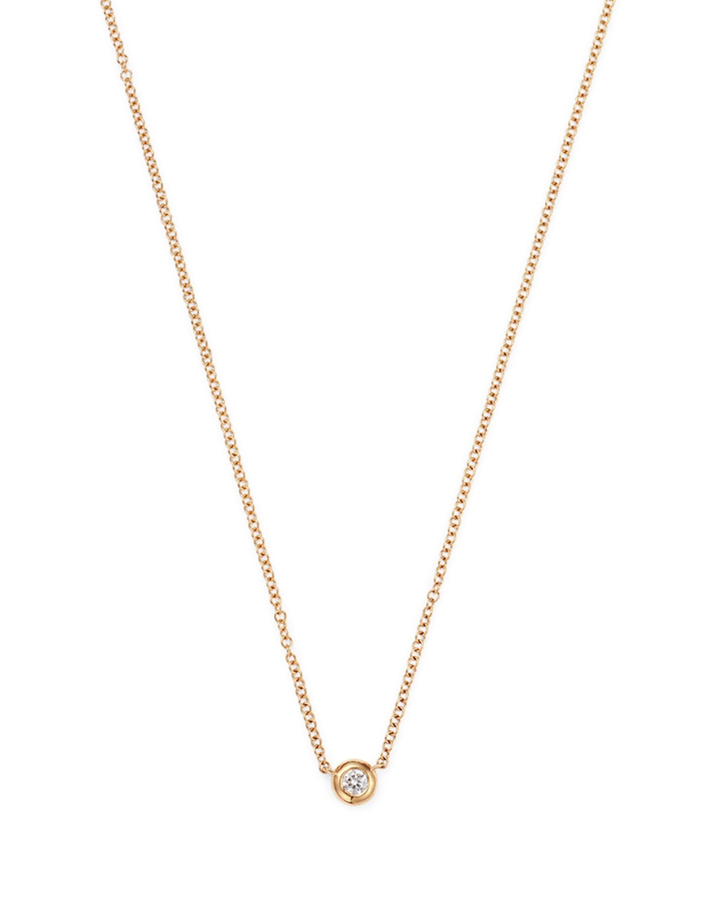 This 14K Yellow Gold Bezel-Set Diamond Pendant Necklace by Moon & Meadow features a solitary diamond set in a bezel, exuding understated elegance. The fine 14K yellow gold chain complements the diamond’s brilliance, making it the perfect piece for daily wear or layering with other necklaces. The 18' adjustable length ensures a customizable fit.