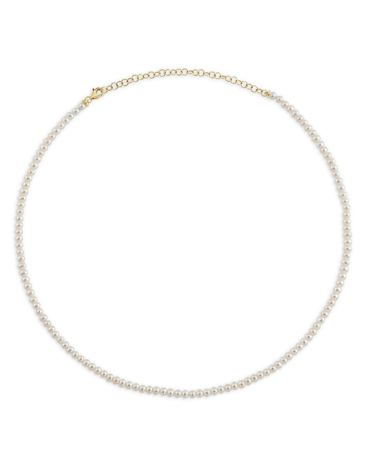 This 14K Yellow Gold Cultured Freshwater Pearl Collar Necklace by Moon & Meadow is an elegant and sophisticated piece that showcases the timeless beauty of cultured freshwater pearls. The adjustable 18-21" length ensures a perfect fit, while the lustrous 3-4mm pearls are beautifully complemented by the rich 14K yellow gold setting. This collar necklace is ideal for adding a touch of luxury to any ensemble.