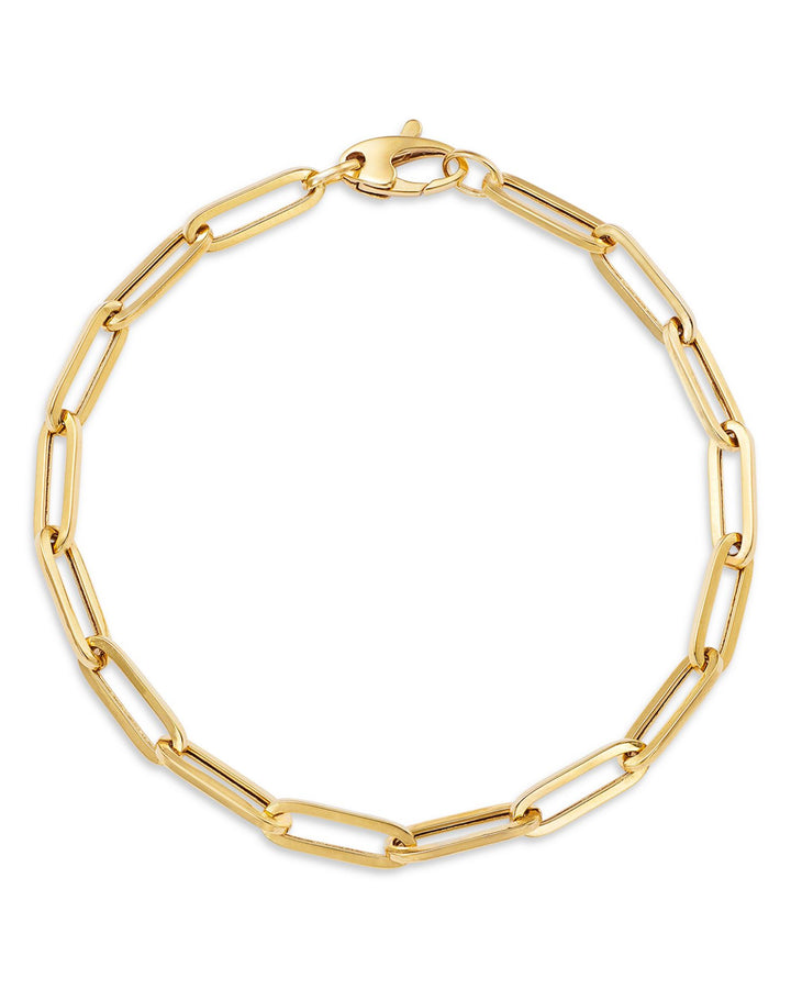 This Paperclip Link Bracelet in 14K Yellow Gold by Moon & Meadow offers a luxe and contemporary look with its polished paperclip-style links. Perfect for adding a bold yet refined layer to your jewelry collection.