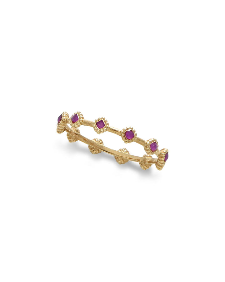 This 14K Yellow Gold Purple Enamel Beaded Station Band by Moon & Meadow is a colorful and playful piece, ideal for stacking. The vibrant purple enamel accents are set against a polished 14K yellow gold band, creating a striking contrast that adds a touch of fun and sophistication. Perfect for pairing with other rings or wearing alone for a bold statement.