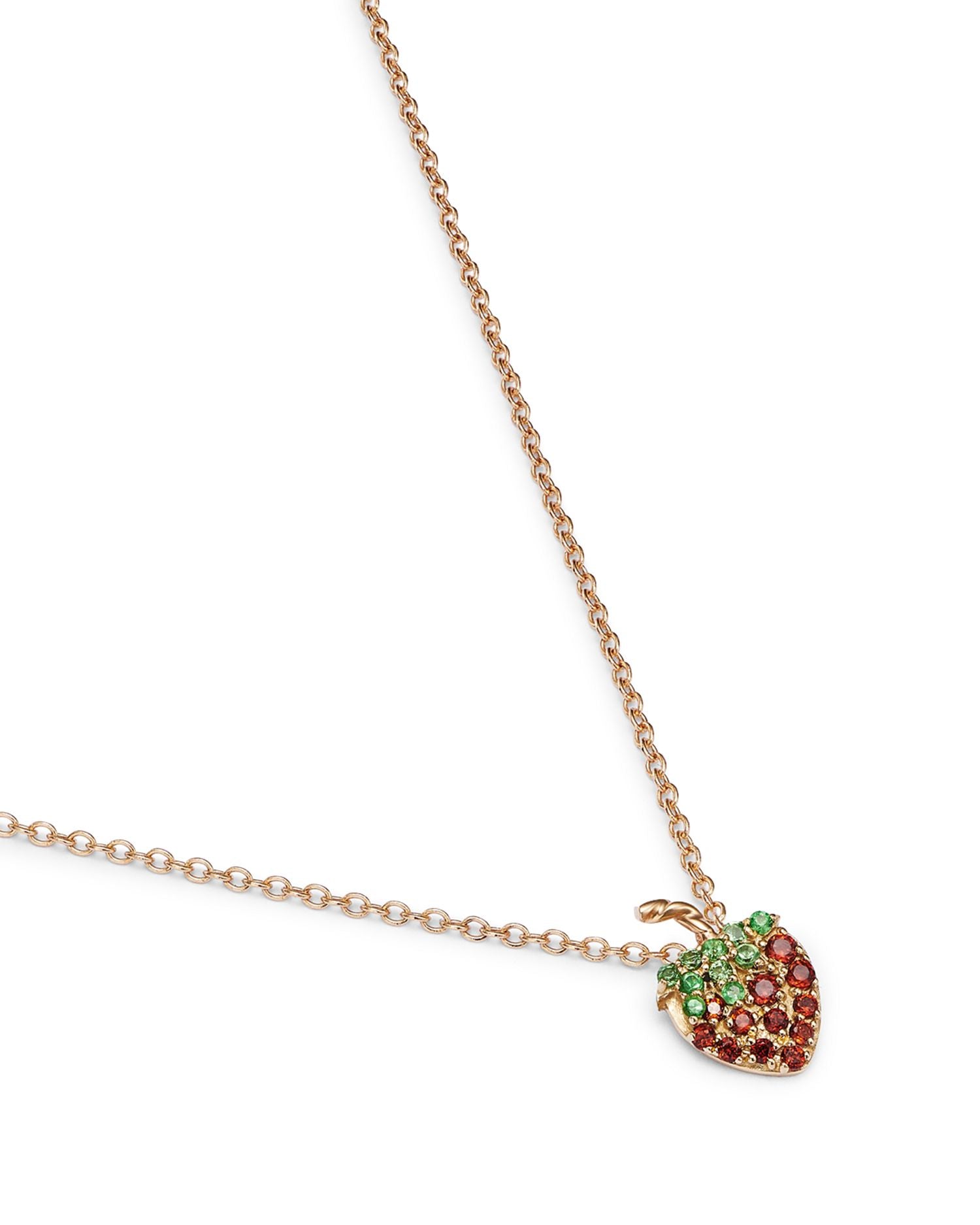 Handcrafted in 14K yellow gold with garnet and tsavorite, measuring 16-18' in length, with a pendant size of 0.31'. Features a spring ring clasp closure.