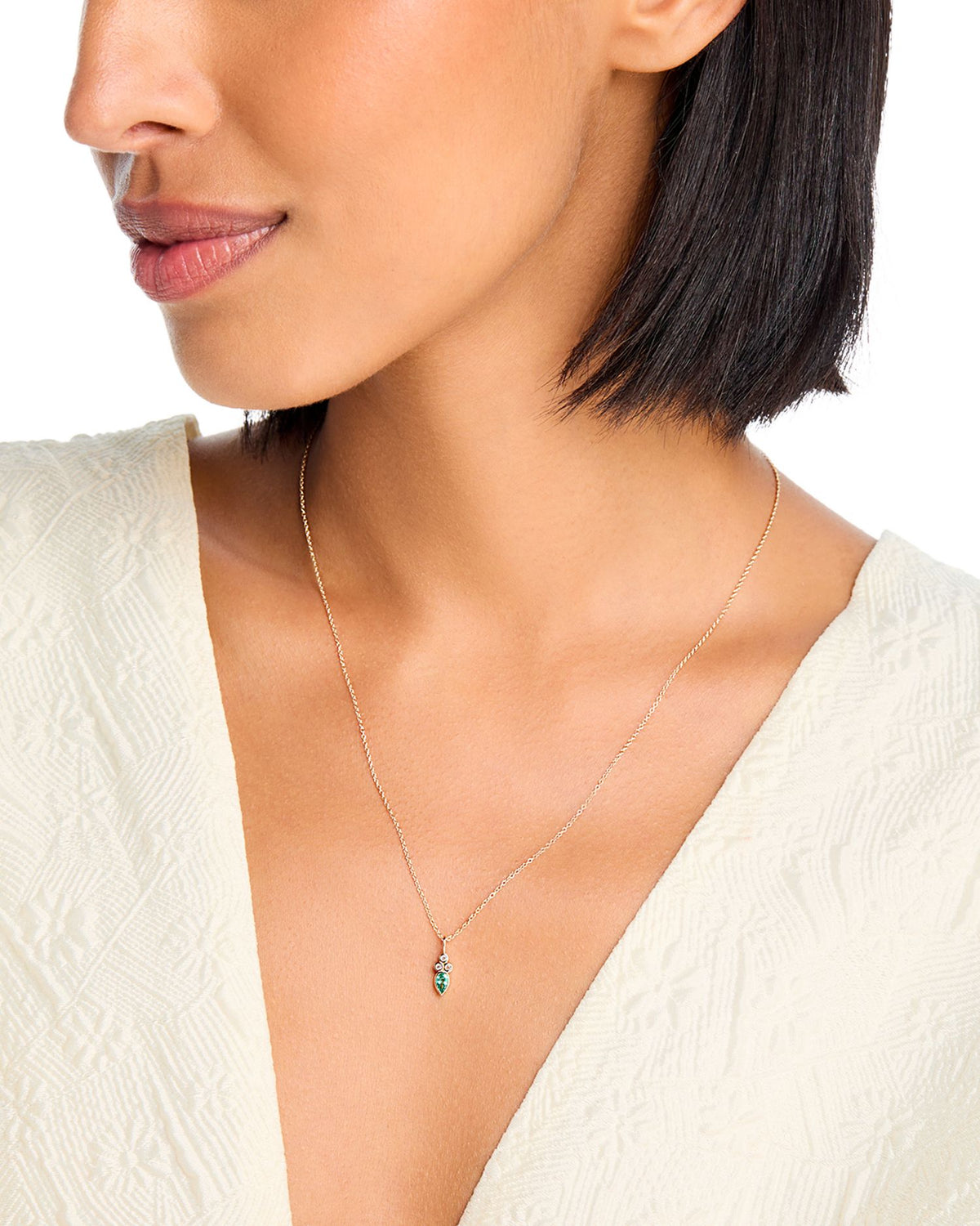 This 14K Yellow Gold Italy Emerald & White Topaz Bezel Pendant Necklace by Moon & Meadow is part of the Italy collection, inspired by the breathtaking Emerald Grotto in Amalfi. The pendant features a rich emerald accented by glistening white topaz, set in a polished 14K yellow gold bezel. The 16-18' adjustable chain and spring ring clasp closure ensure a perfect fit for this elegant and timeless piece.