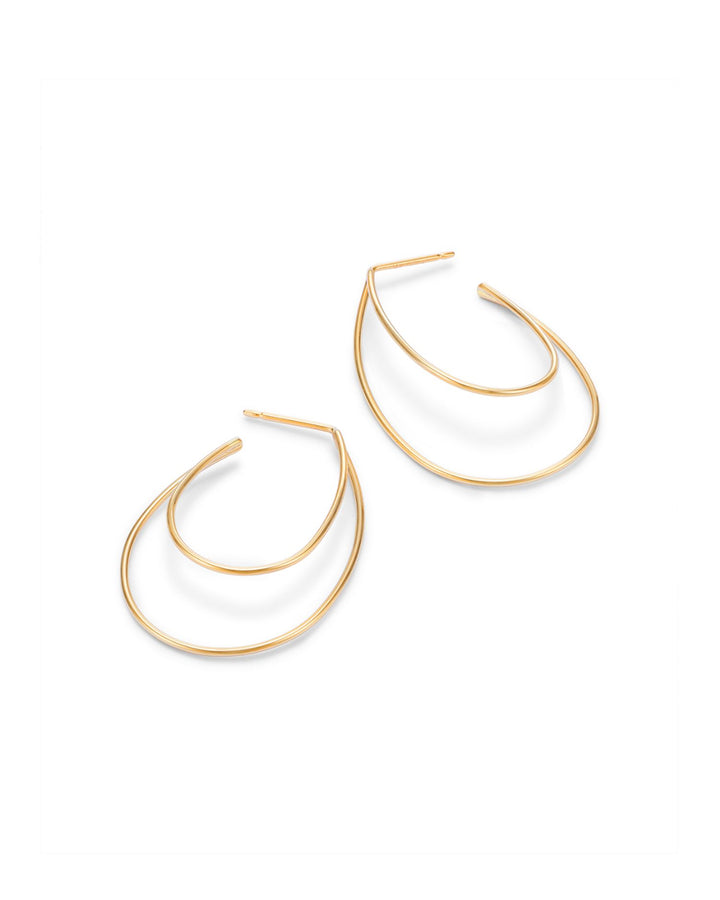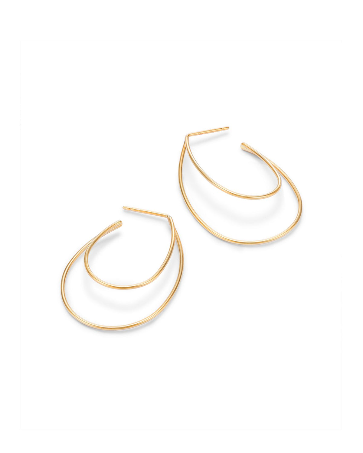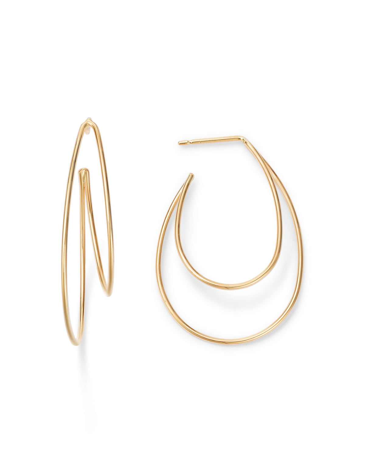 These 14K Yellow Gold Double Wire Hoop Earrings by Moon & Meadow are an update to the classic hoop style, featuring two intertwined wires for a modern twist. The 1.1' length offers a balanced, statement look, while the polished 14K yellow gold ensures a luxurious shine. Perfect for both everyday wear and evening outings.