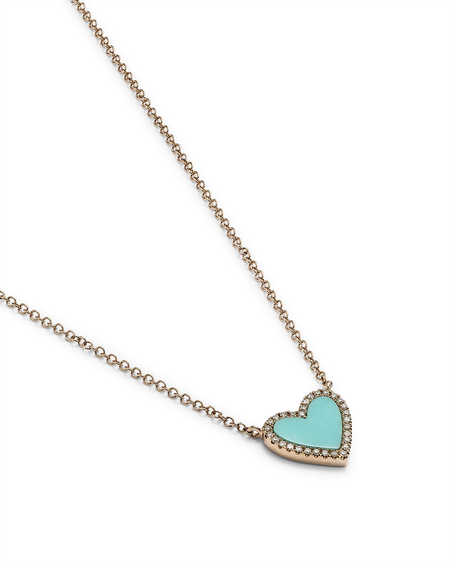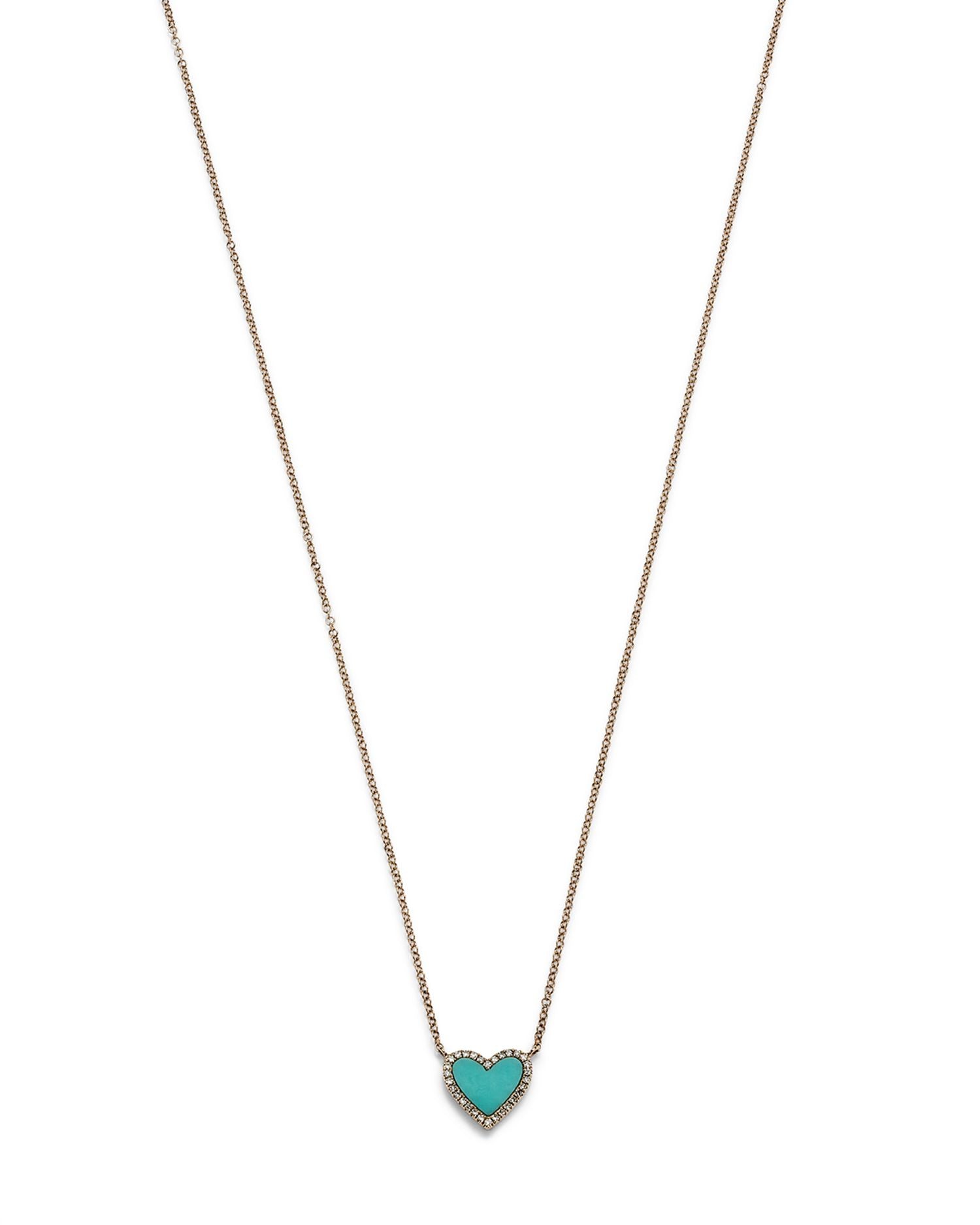 14K Yellow Gold Kate Turquoise & Diamond Heart Pendant Necklace, 18'
