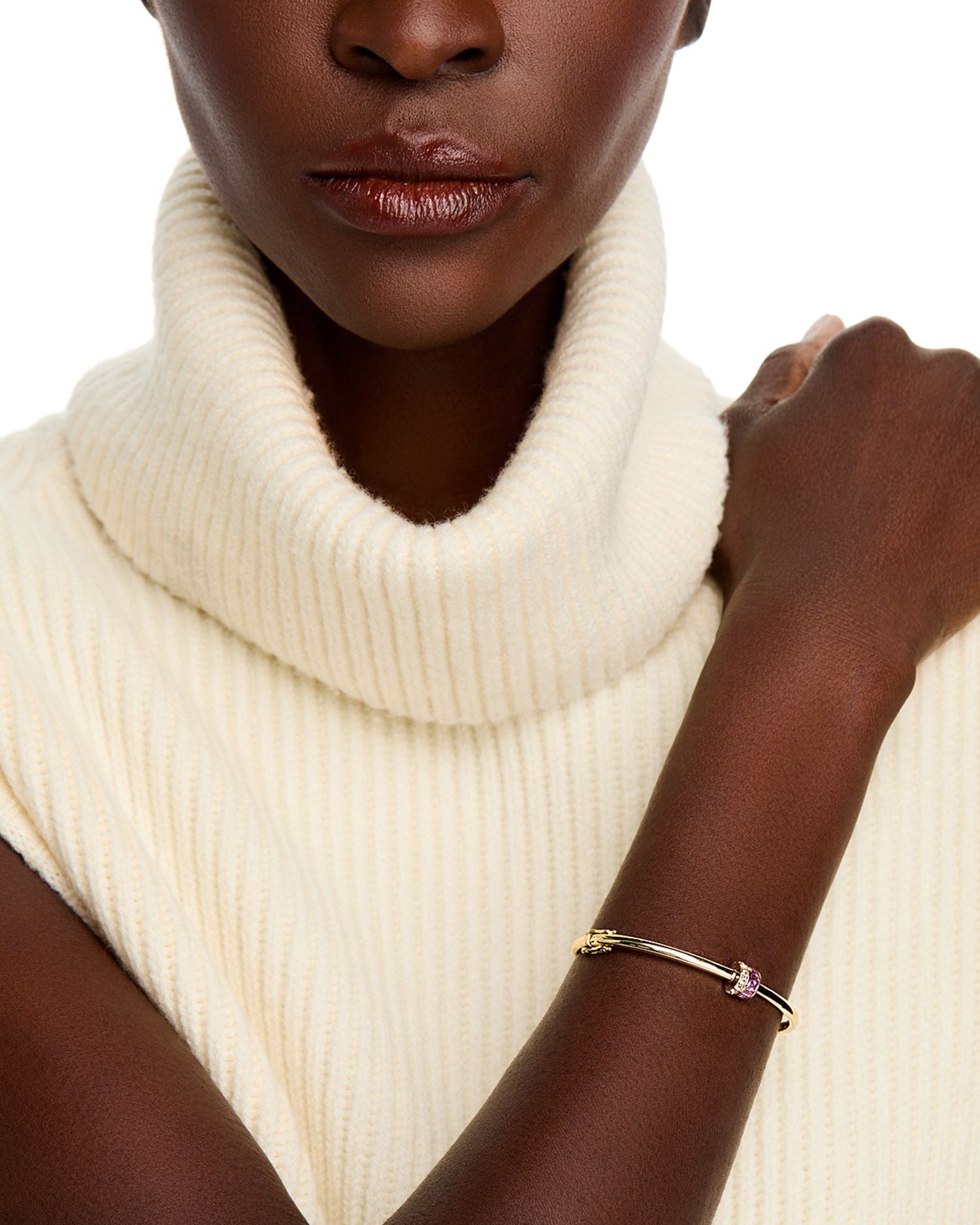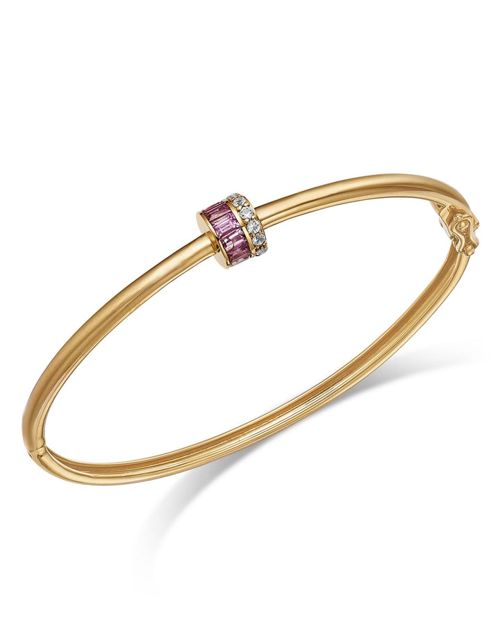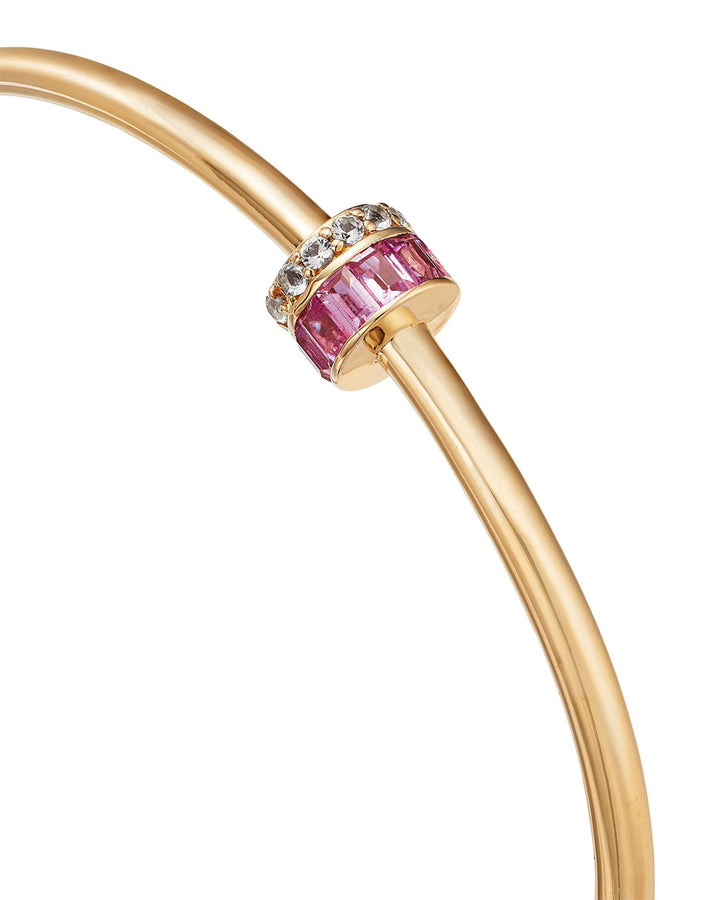14K Yellow Gold Wicked Pink Sapphire & White Topaz Bangle Bracelet