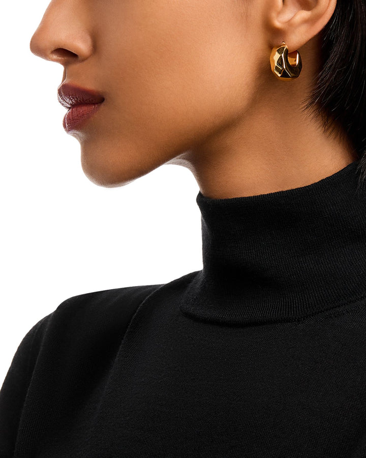 14K Yellow Gold Faceted Huggie Hoop Earrings