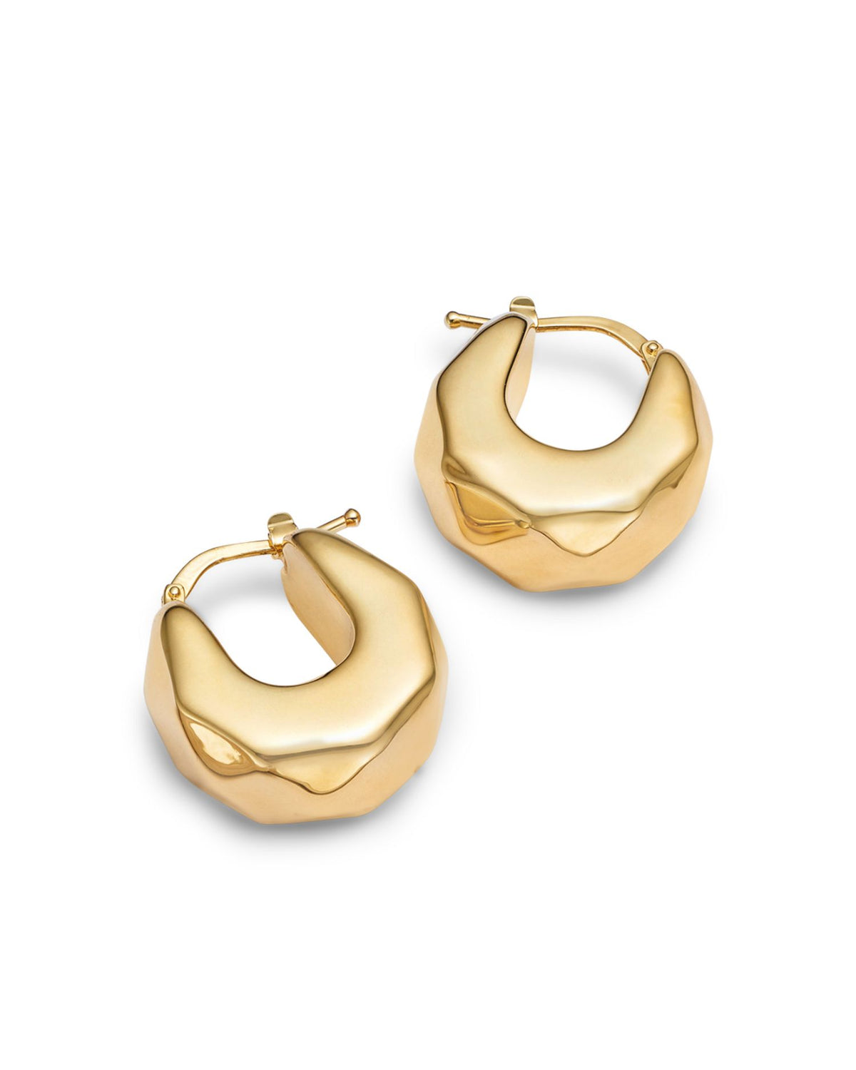 These 14K Yellow Gold Faceted Huggie Hoop Earrings by Moon & Meadow feature a faceted texture that catches the light from every angle. The unique design brings dimension and sparkle to the classic huggie hoop style, making these earrings a standout piece for any occasion. The 0.83' length and click-top closure ensure a secure and comfortable fit.
