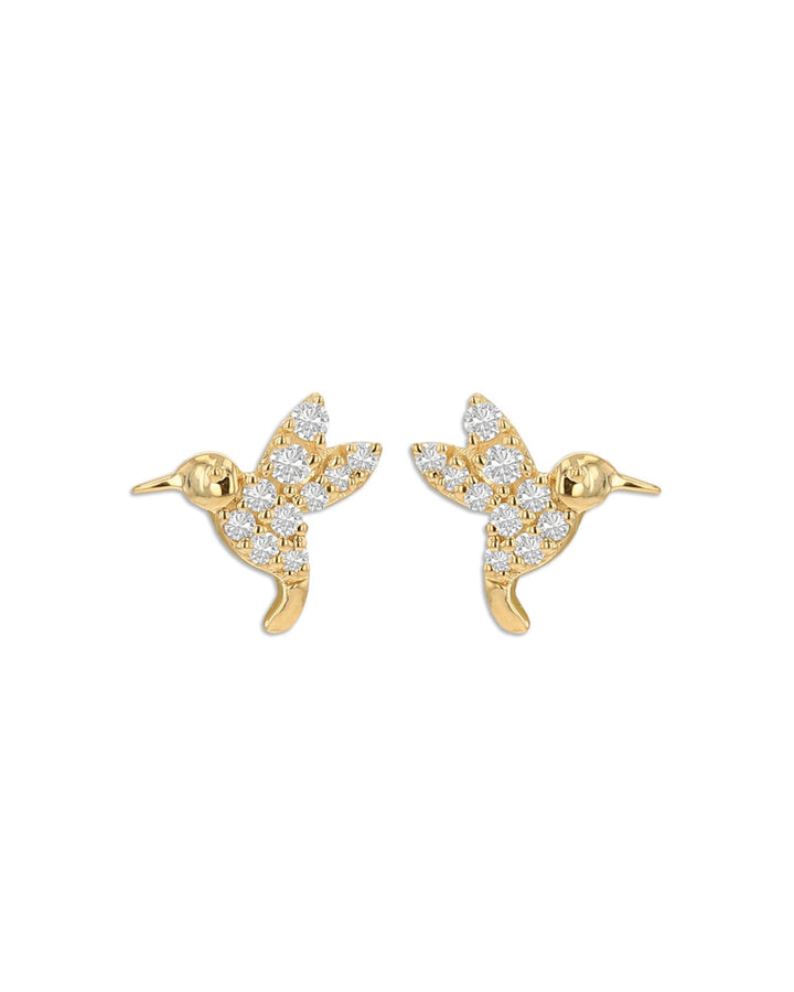 14K Yellow Gold Diamond Hummingbird Stud Earrings