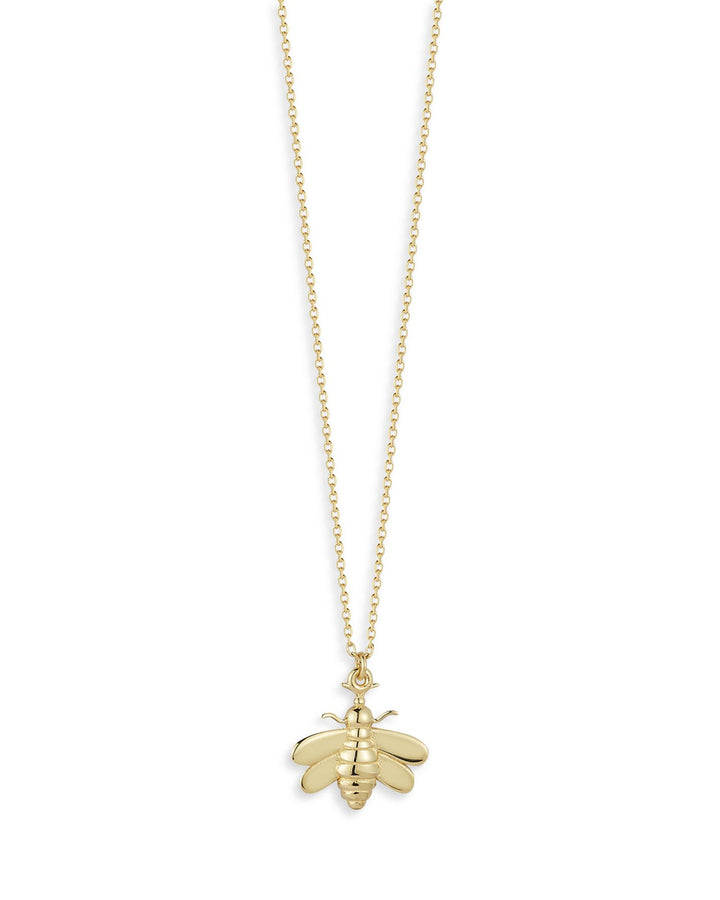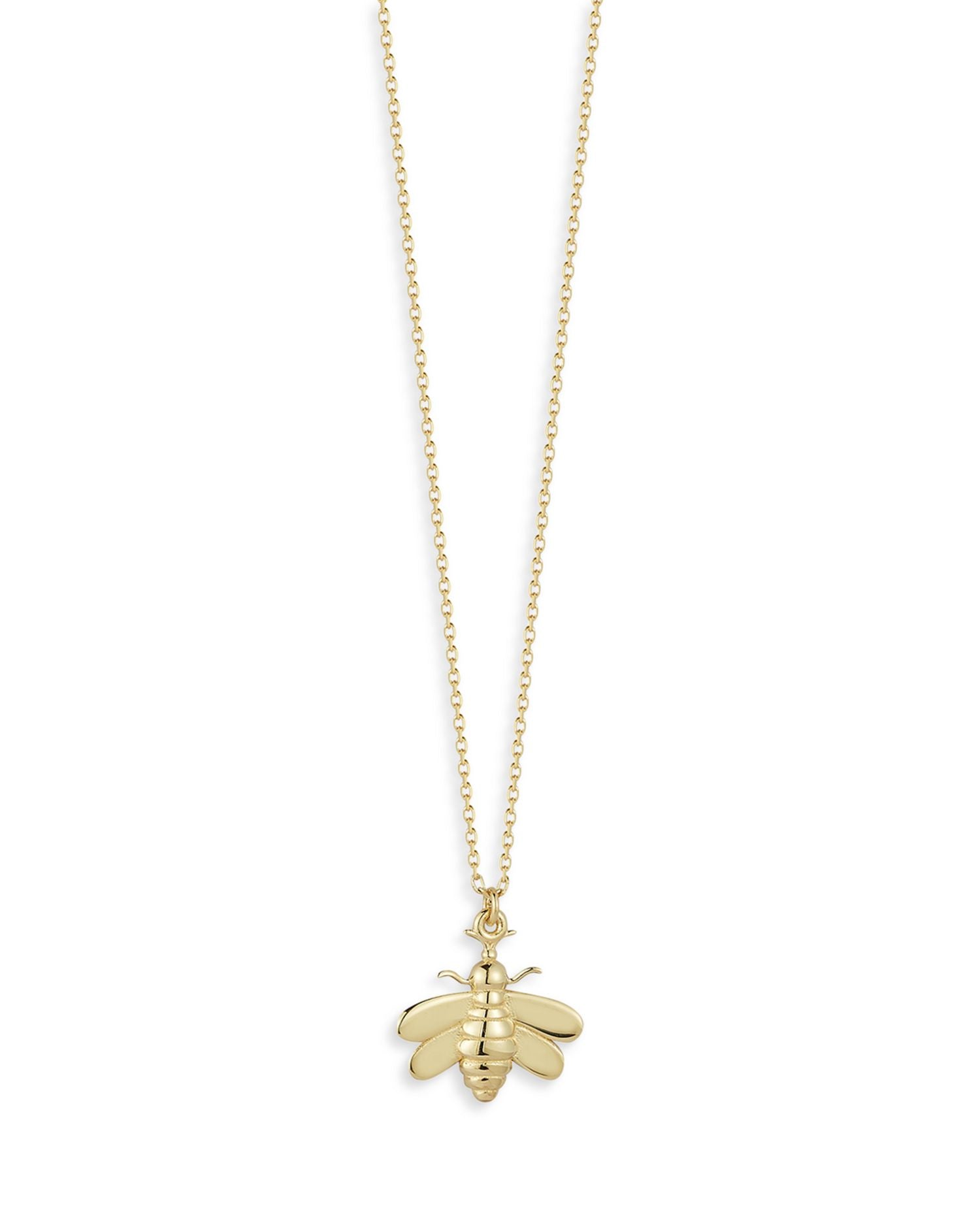 This Bee Necklace in 14K Yellow Gold by Moon & Meadow features a beautifully detailed bee pendant that adds a charming touch to any look. The polished 14K yellow gold gives the pendant a warm, radiant finish. The 17' chain and spring ring closure ensure a perfect fit, making this necklace a delightful and whimsical addition to your jewelry collection.