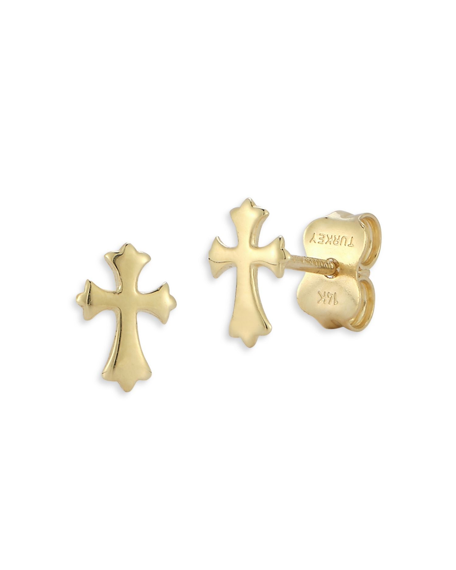 14K Yellow Gold Cross Stud Earrings - Exclusive