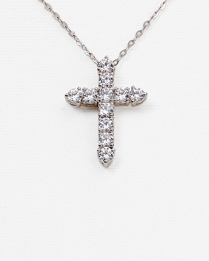 This Cross Pendant Necklace by Nadri combines timeless faith with everyday elegance. Featuring fine pavé detailing, it is a versatile piece perfect for layering or wearing solo. The delicate design adds a subtle yet meaningful touch to any outfit.