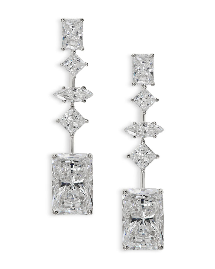 Rare Jewels Cubic Zirconia Linear Drop Earrings in Rhodium Plated