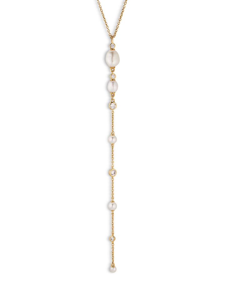 Siren Pavé, Imitation & Cultured Freshwater Pearl Lariat Necklace, 16"-18"