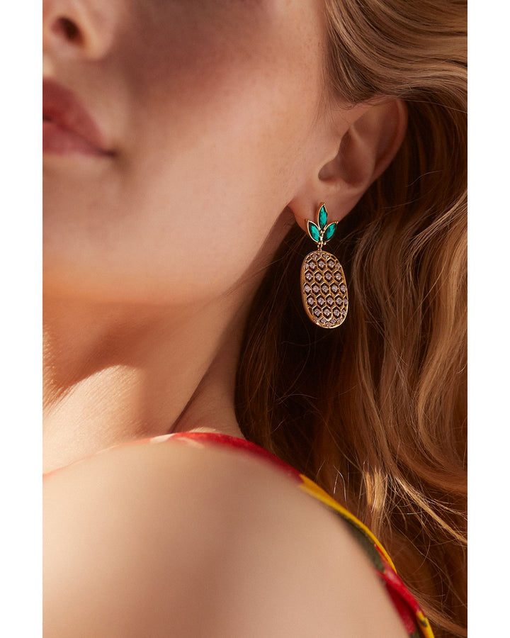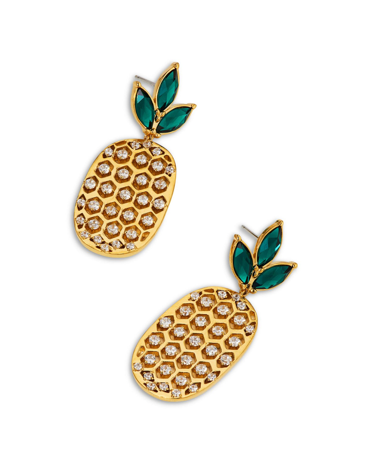 Dolce Vita Pavé & Green Crystal Pineapple Drop Earrings in 18K Gold Plated