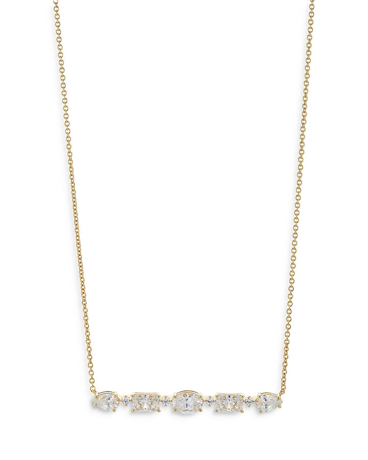 This Cora Frontal Bar Necklace by Nadri combines modern minimalism with a touch of sparkle. Its sleek bar design, accented with cubic zirconia, makes it a versatile accessory for layering or wearing solo.