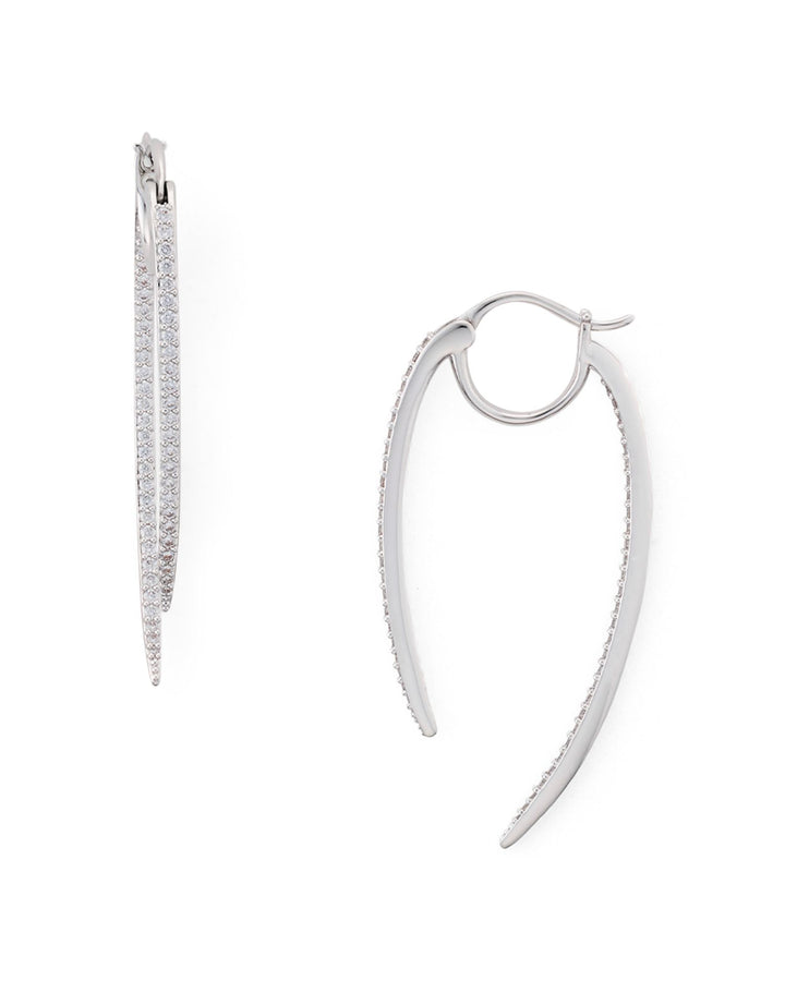 These Curved Spike Hoop Earrings by Nadri combine edgy design with sparkling elegance. Featuring a unique curved silhouette and pavé cubic zirconia accents, they add a bold statement to both casual and formal ensembles.