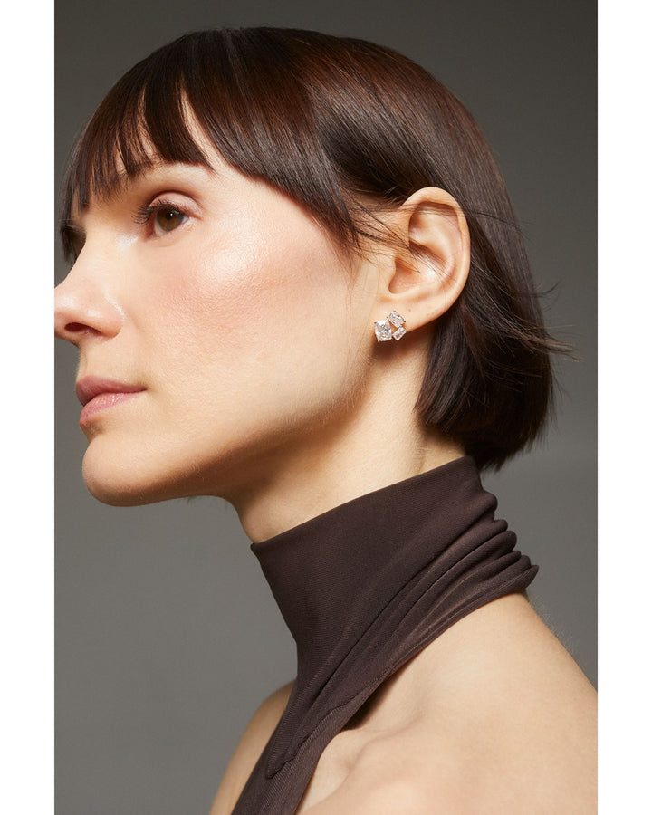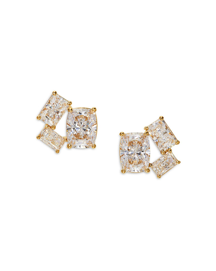 Cubic Zirconia Cluster Stud Earrings in 18K Gold Plated