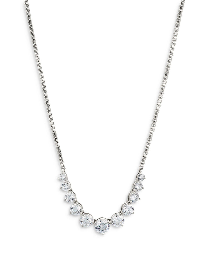 This Perfect Tennis Graduated Cubic Zirconia Statement Necklace by Nadri from the Perfect Tennis collection exudes sophistication. Featuring graduated cubic zirconia, this adjustable necklace makes a striking statement, perfect for formal events or adding glamour to any ensemble.
