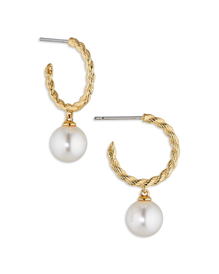 These Nacre Pearl Charm Twist Hoop Earrings by Nadri bring a fresh take on classic pearl jewelry. The twist hoop design paired with lustrous nacre pearls creates a versatile and elegant accessory for any occasion.