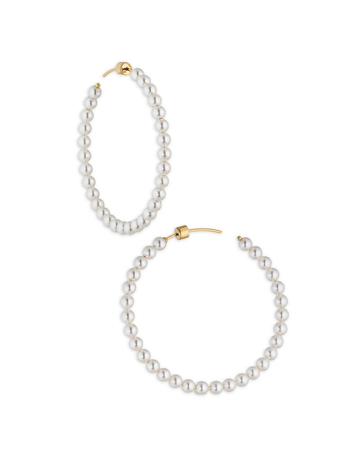 Nacre Pearl Beaded Hoop Earrings in 18K Gold Plated