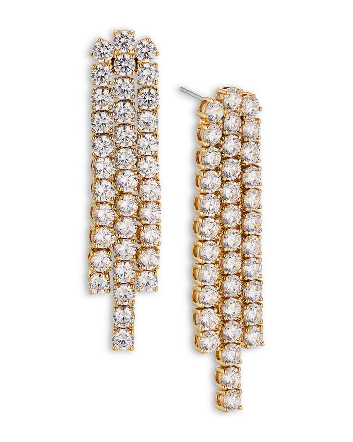 Made in 18K gold-plated brass with cubic zirconia accents. Measure 1.75"L and feature post-back closures for secure wear.